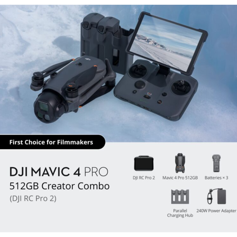 The DJI Mavic 4 Pro Drone with 512GB Creator Combo is designed for professionals seeking unparalleled aerial imaging capabilities. Its 360° Infinity Gimbal allows for creative shot compositions, while the triple-camera system offers versatile focal lengths for various shooting scenarios. The 6K60 HDR video support ensures high-quality footage, and the 512GB internal storage provides ample space for extensive recording sessions. The RC Pro 2 controller enhances user experience with its high-resolution display and intuitive controls. With up to 51 minutes of flight time and advanced obstacle avoidance features, this drone ensures safe and efficient operations. The Quick Transfer feature allows for seamless data transfer, streamlining the post-production process. Whether capturing cinematic landscapes or dynamic action shots, the Mavic 4 Pro is a powerful tool for any aerial cinematographer.
