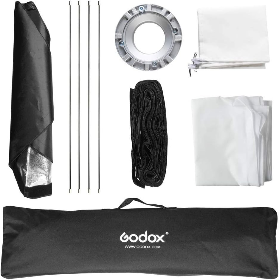 The Godox SB-FW 35×160 cm strip softbox offers a sleek, narrow lighting modifier designed for Bowens‑mount strobes and continuous lights. This long strip shape is ideal for accent, edge, and product lighting—creating clean, linear highlights perfect for fashion, portraits, or creative studio setups. Its durable build and high‑reflective silver interior ensure consistent, professional light output with minimized spill.