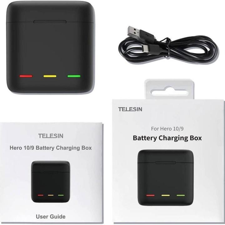Includes 2 high-performance Telesin batteries and a compact charging hub