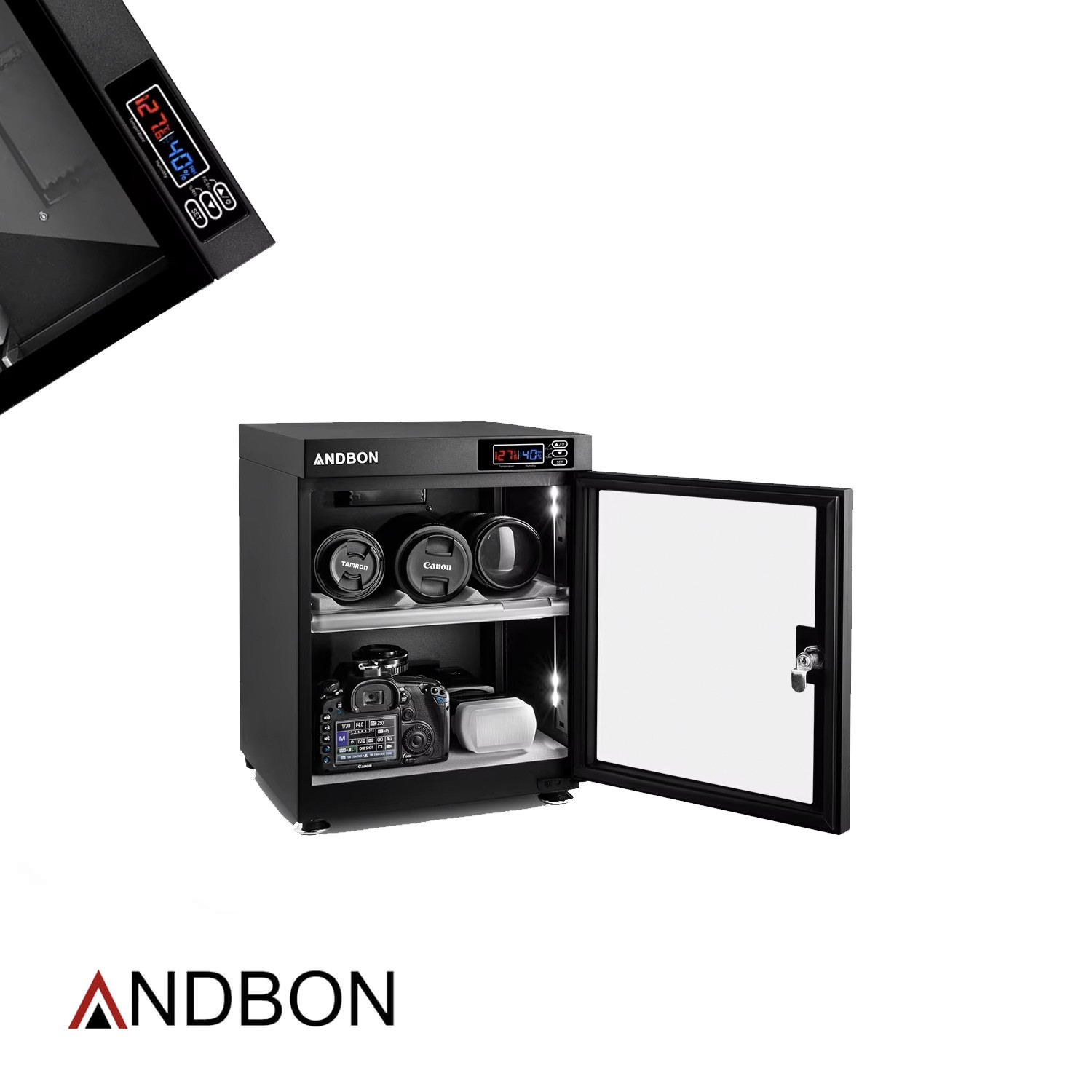 The Andbon AD-35S is a 35-liter electronic dry cabinet built to keep your camera gear, lenses and other sensitive equipment safe from moisture, fungus, dust and corrosion. It features an automatic moisture-control system that stabilizes interior humidity — protecting your gear in humid climates. The cabinet has an LED display showing humidity and temperature, and an adjustable shelf for versatile storage. A tempered-glass door with rubber seal and lock keeps the interior airtight and secure, while interior LED light helps you quickly find gear even in low light. Power consumption stays low (under 8 W), making it efficient for steady, long-term use. At roughly 7.1 kg, it’s compact enough to fit in a home studio or desktop setup.