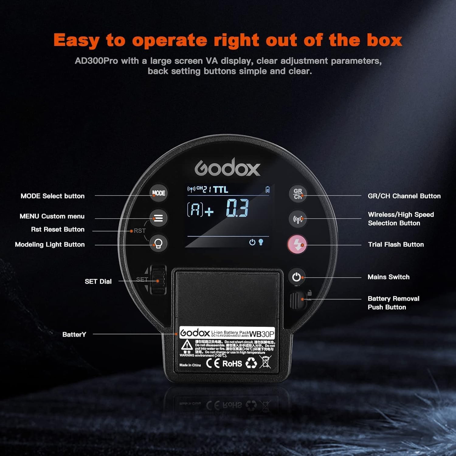 | Wireless System | Built-in Godox 2.4GHz X System (32 Channels, 16 Groups) |
