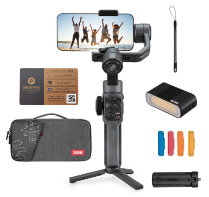 The Zhiyun Smooth 5 Combo is a refined smartphone gimbal that brings cinematic stability and intuitive control to mobile filmmaking. Featuring magnetic steel motors and a focus/zoom wheel, it enables professional shots like dolly zoom, time-lapse, and reverse-angle footage via the ZY Cami app. Redesigned for compact usability, it offers full 360° pan, 349° tilt, and 300° roll, unlocking smooth, dynamic storytelling in every frame.